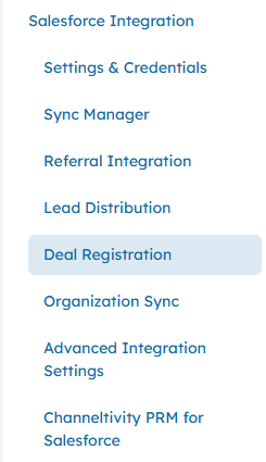 Log into Channeltivity as an Administrator and go to Settings > Salesforce Integration. (If you haven't done so already, make sure to enter your Salesforce Integration Credentials.) If your Salesforce credentials are valid, the Deal Registration configuration section becomes available. Click on it: