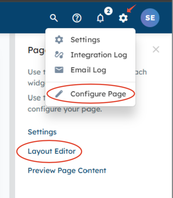 Once you've configured the page Settings, you can begin adding content and configuring the page's layout using the Layout Editor. To access the Layout Editor, click the gear icon in the top right > Configure Page > Layout Editor.