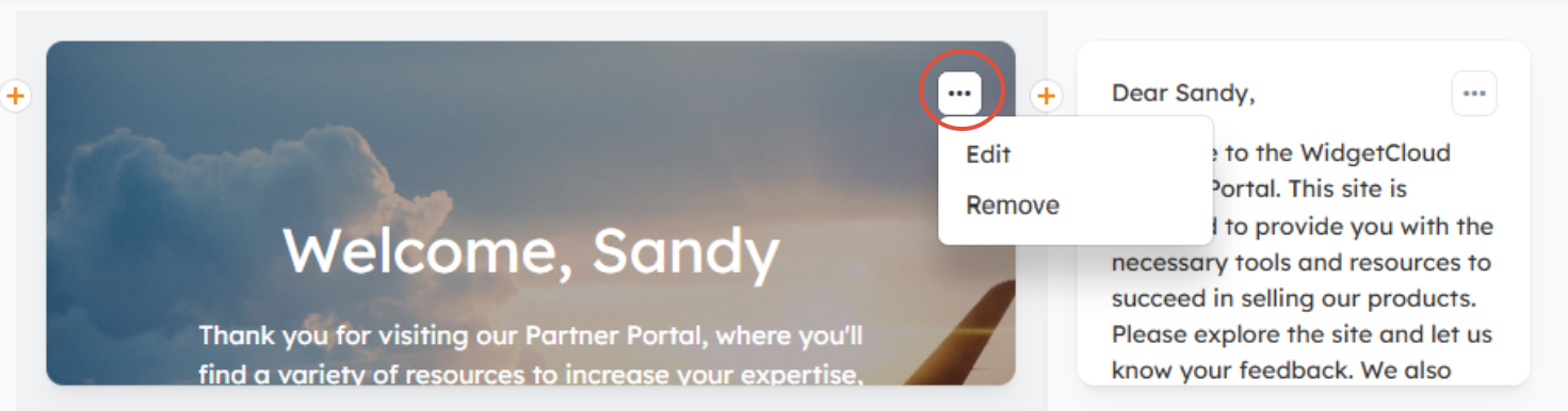 To edit or remove the Widget, hover over the Widget and click the ellipsis icon (three dots) in the top right corner of the Widget > Edit or Remove.