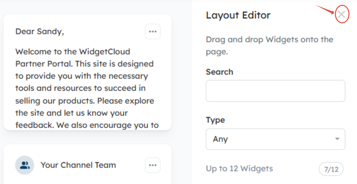When you are finished designing your custom page, click the X button in the top right corner of the Layout Editor menu on the right side panel.