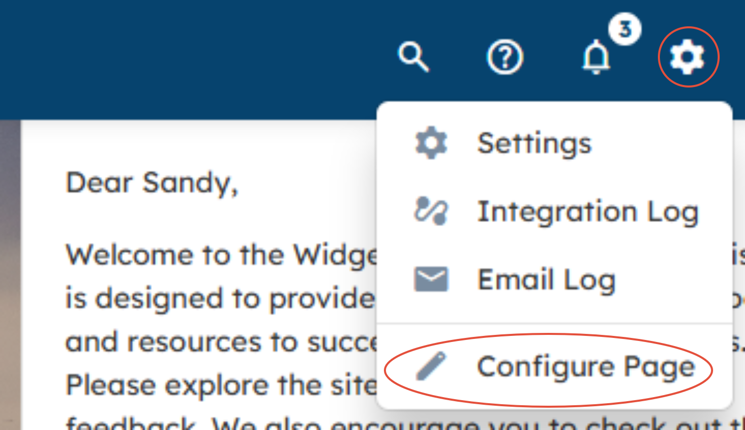 On the home page, click the gear icon in the top right corner of the header > Configure Page > Layout Editor.