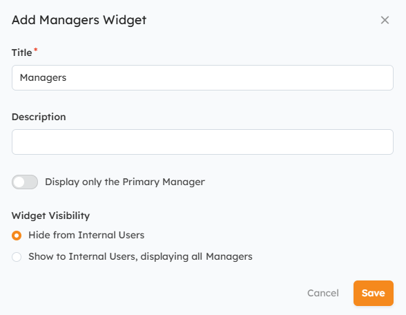 - Show to Internal Users, displaying all Managers - You can choose to make the Widget visible to your Internal Team and include all Managers