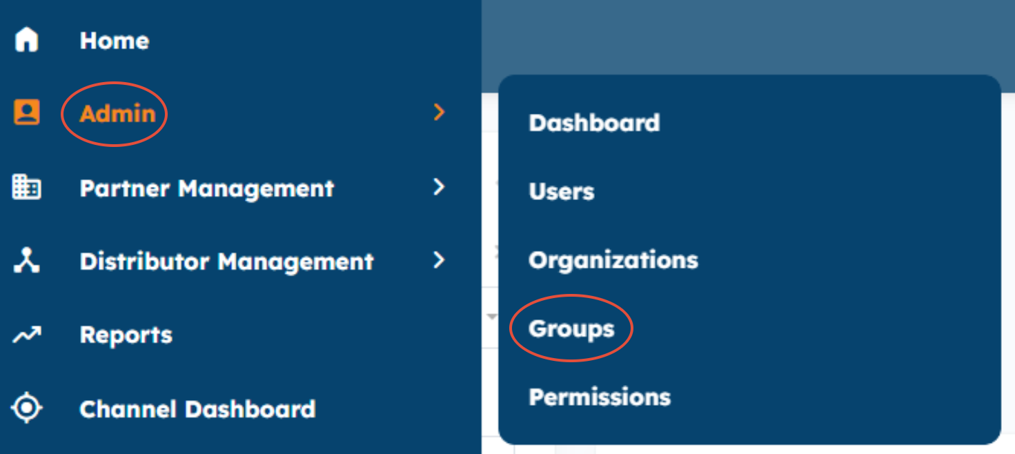 To create a Group, go to Admin and select Groups from the Admin menu in the left navigation menu. This will take you to the Groups page.