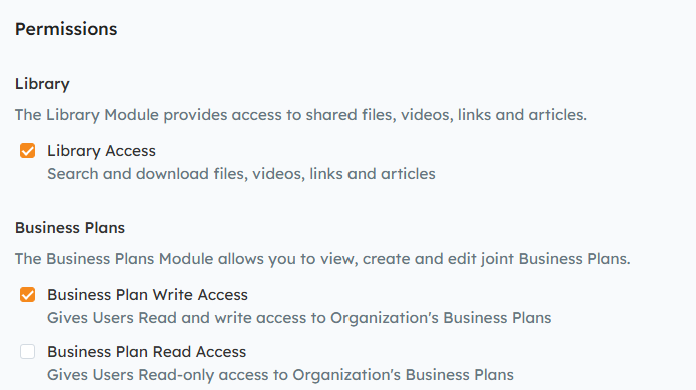 - Scroll down the page to select the appropriate permission/access for each module. Group permissions are defined here.