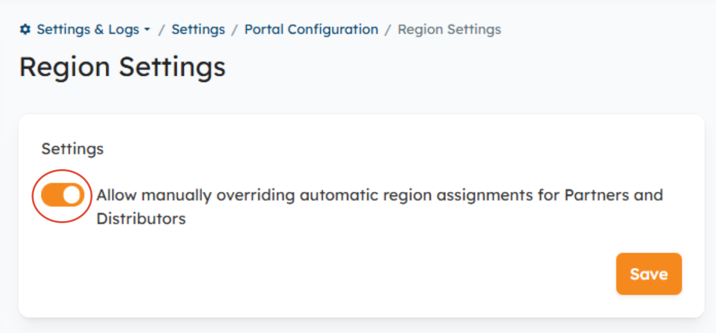 The Region Settings within Channeltivity enable you to categorize Partner and Distributor Organizations by location. The location is based on the country listed for the Organization's record. Regions also drive Agreements, Deal access/visibility, and Deal Email Notifications for Internal Users. Learn more about these topics in the support articles below: