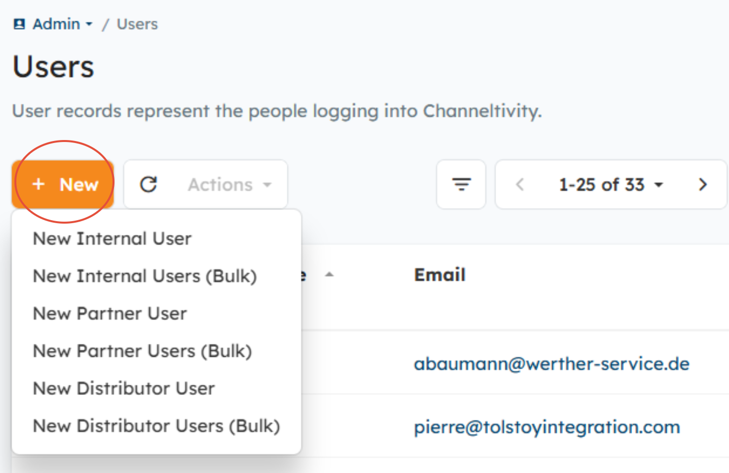 Users are those who have access to Channeltivity and belong to a Group and Organization. User details include name, title, email, phone, and other contact data. There are three types of Channeltivity Users: Internal, Partner, and Distributor.