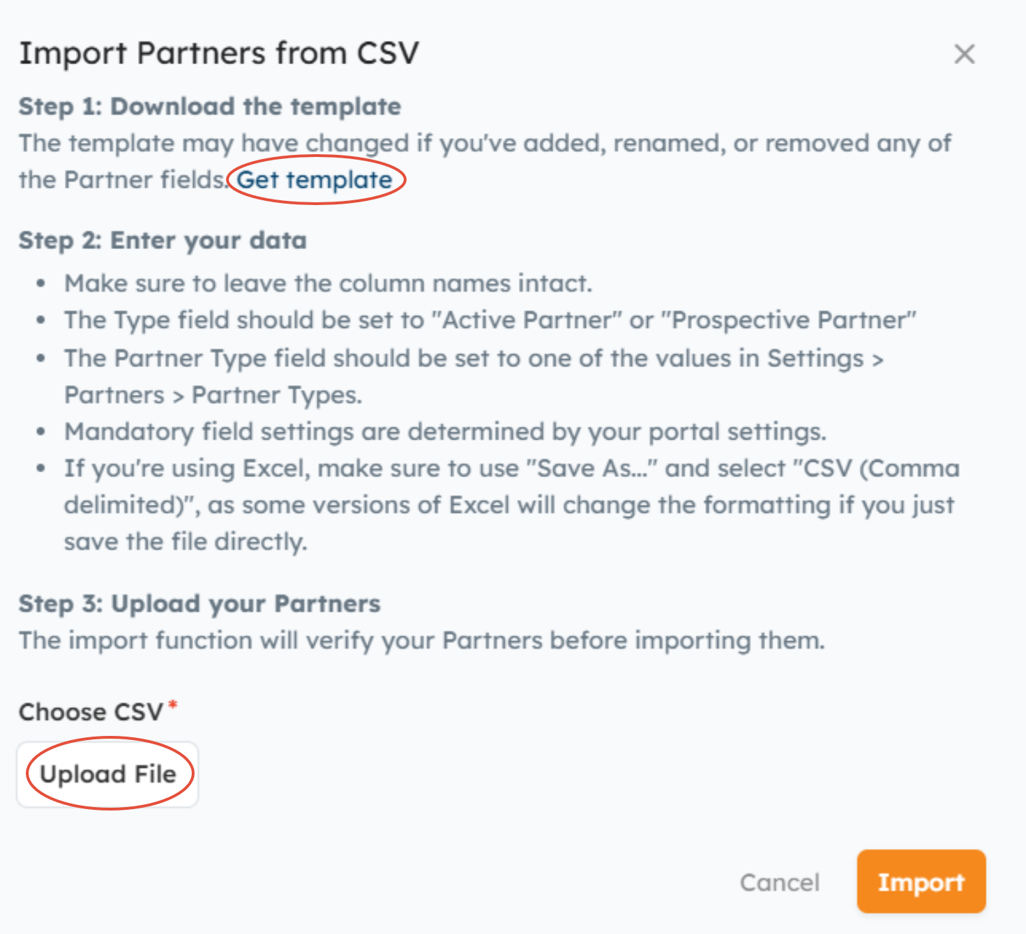 Importing Partner Organizations via CSV: