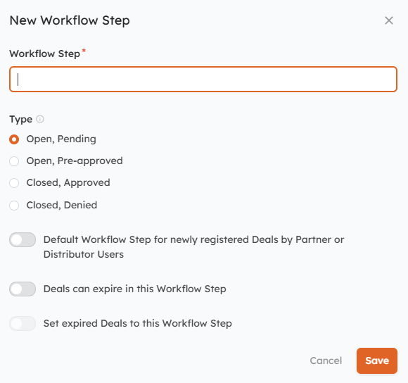 - Open: Pre-approved: The Deal is approved but still being worked on, which means it's still open. Use this Step for approvals that expire.