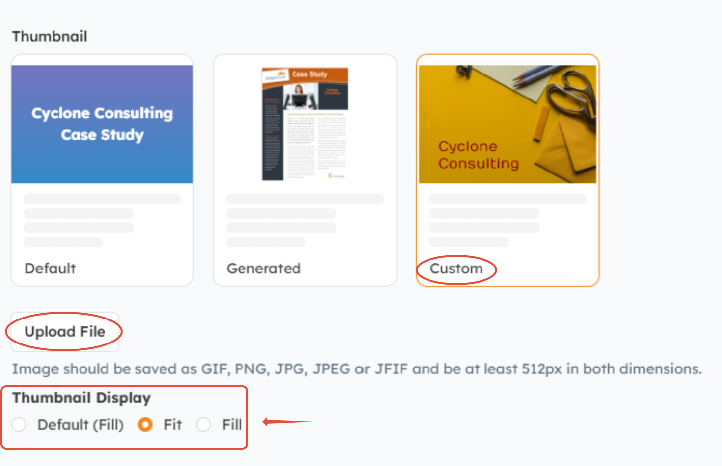 If you want to upload a custom Thumbnail image, you can do so by clicking the "Upload File" button.