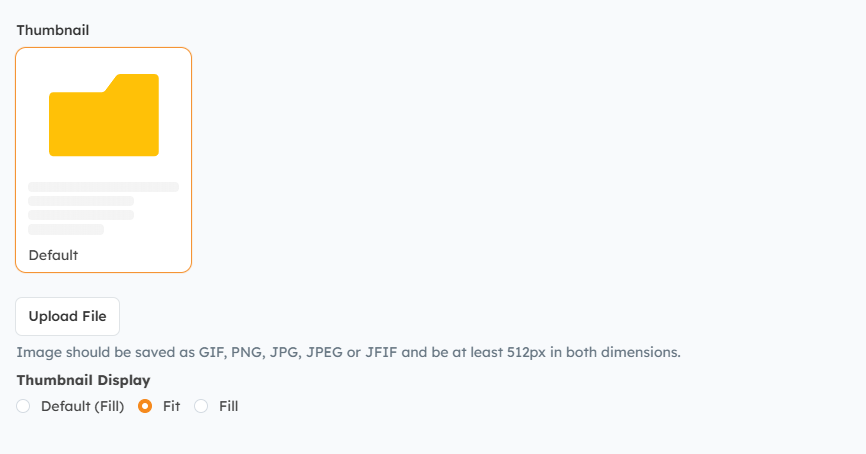 When creating a new Folder, you'll have the option to use the default Folder Thumbnail image or upload a custom image for the Folder's Thumbnail: