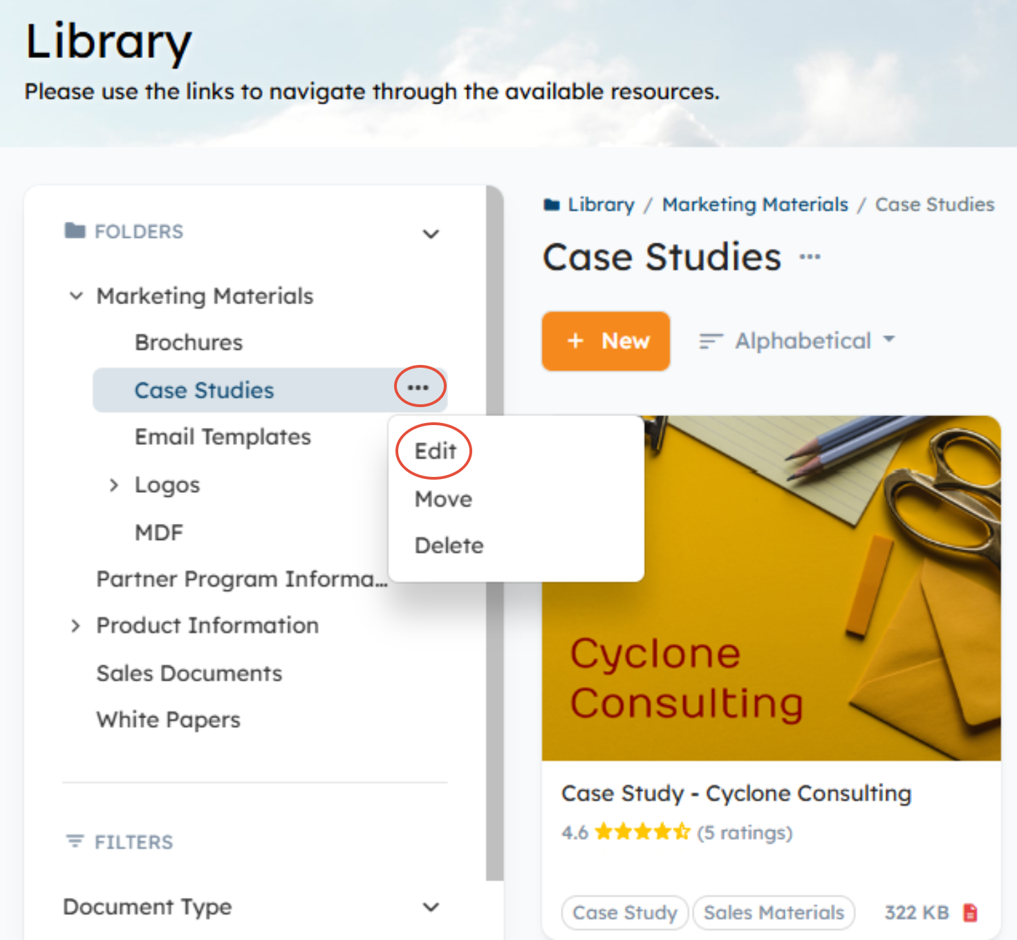 You'll then hover your mouse over the title of the Folder and click the ellipsis icon > Edit.