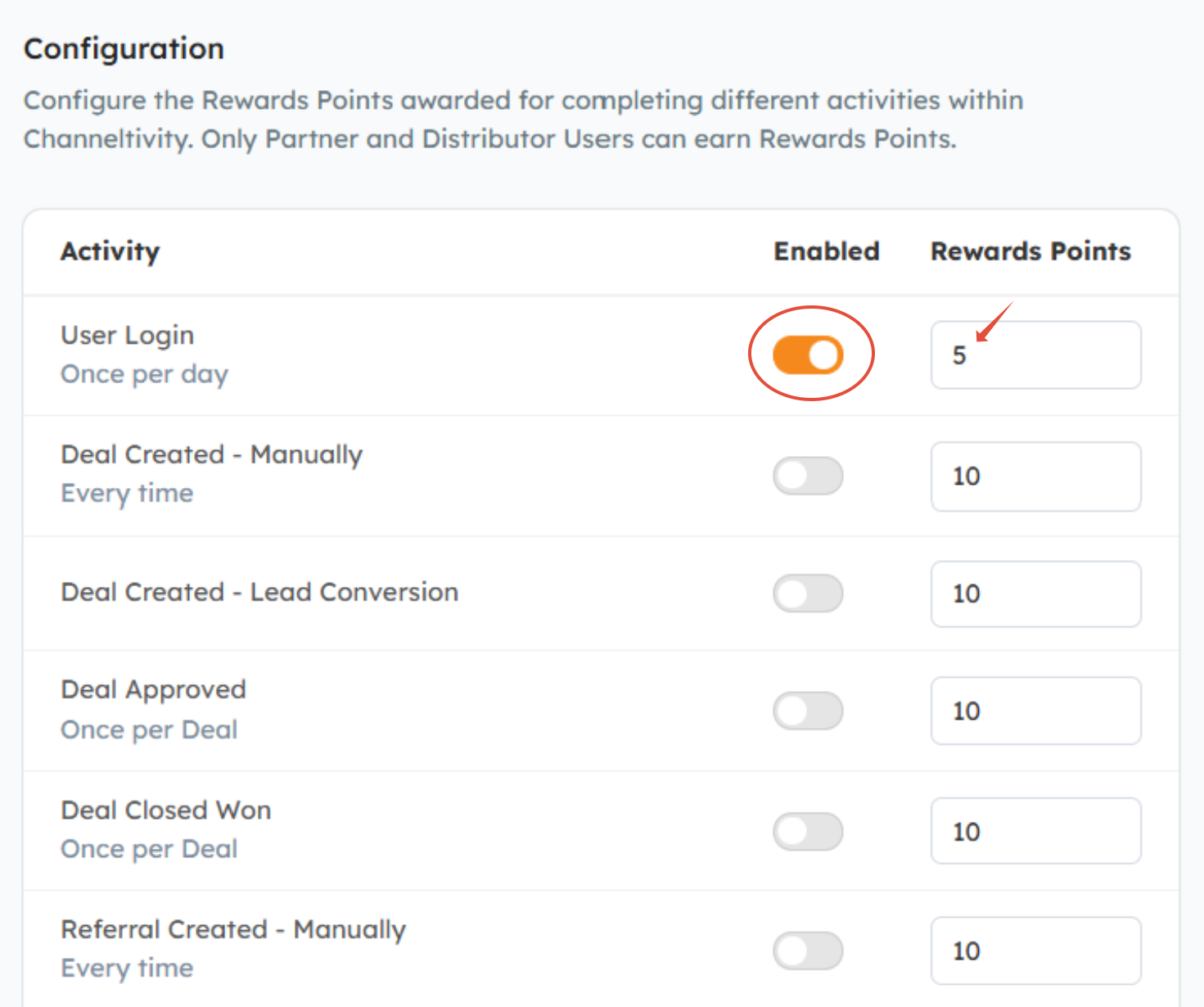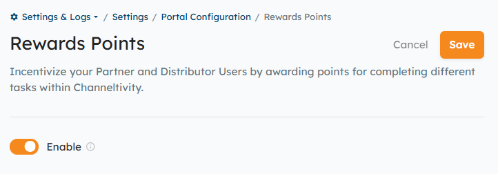 The Rewards Points functionality allows you to incentivize your Partner and Distributor Users by awarding points for completing different activities within Channeltivity. To activate Rewards Points in your portal, please contact Channeltivity Support.