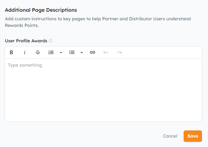 Add custom instructions to the User Profile Rewards Points page to help Partner and Distributor Users understand Rewards Points.
